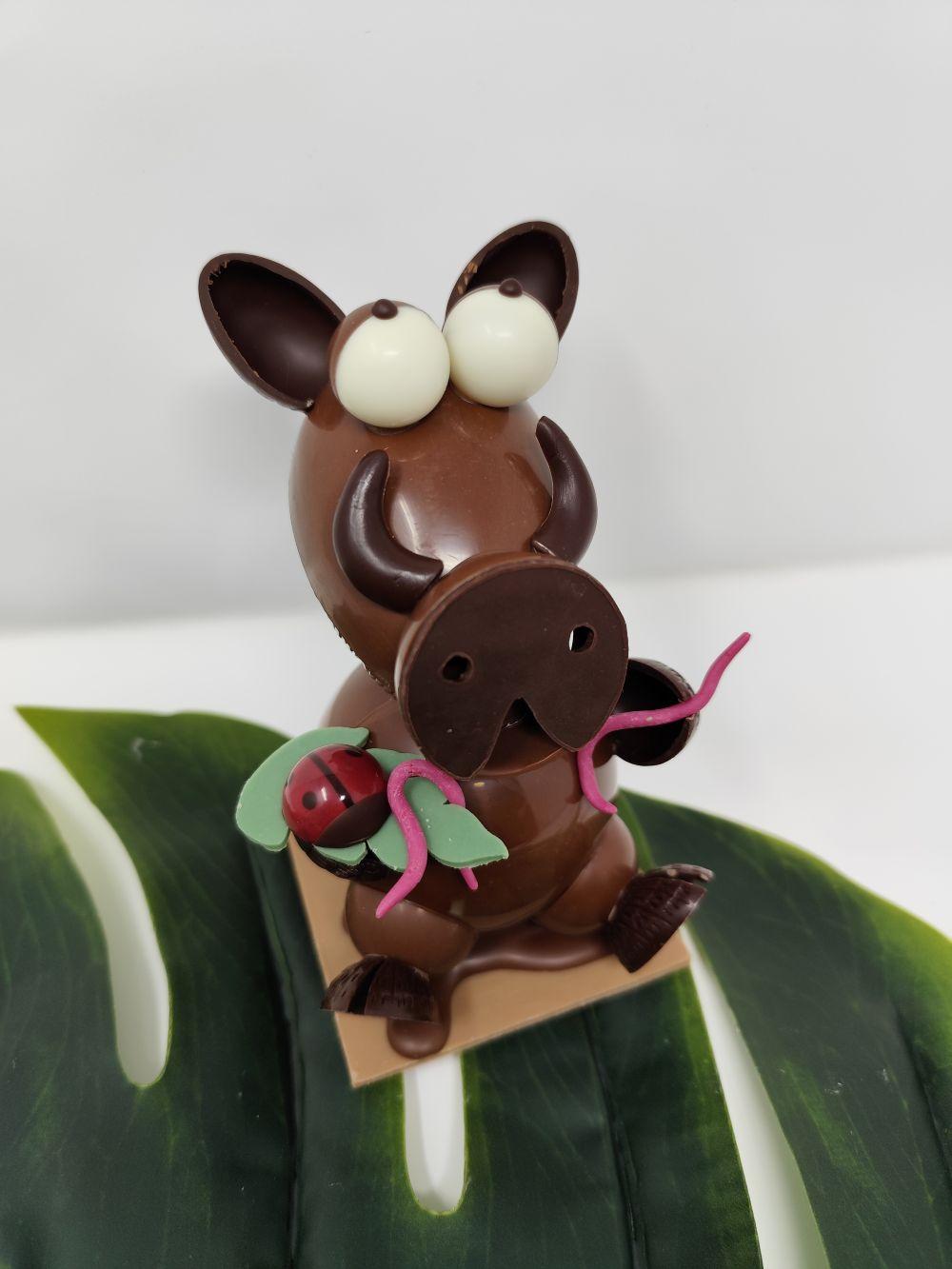 Montage en chocolat noir, lait, blanc et blanc noisette