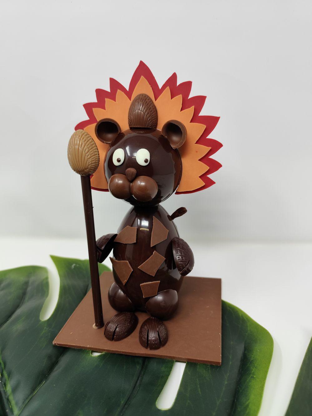 Montage en chocolat noir, lait, blanc et blanc noisette