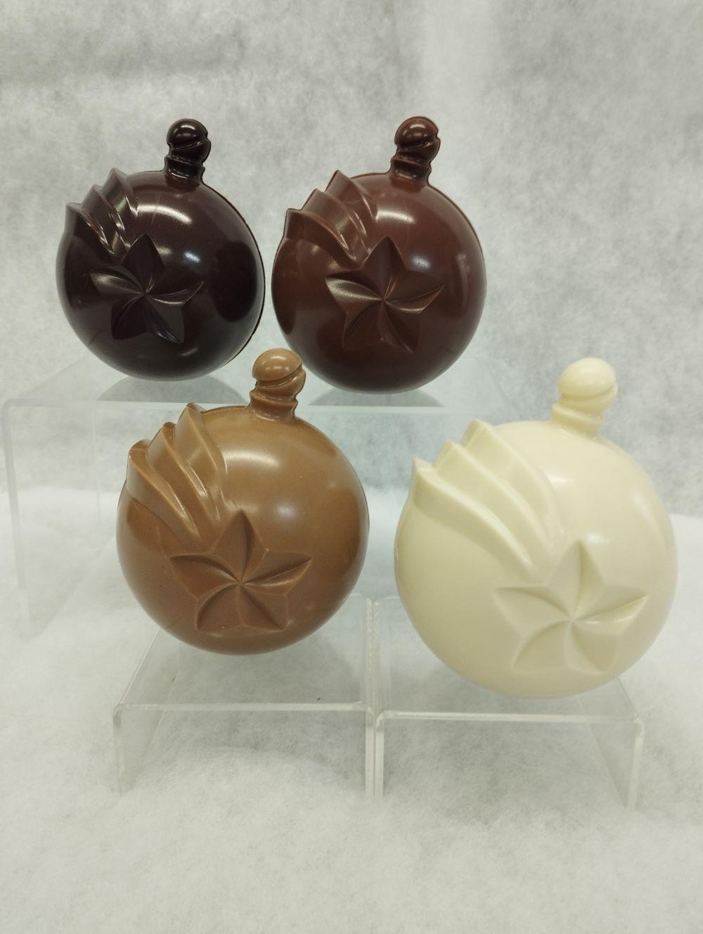 disponible en chocolat noir, lait, blanc et blanc noisette