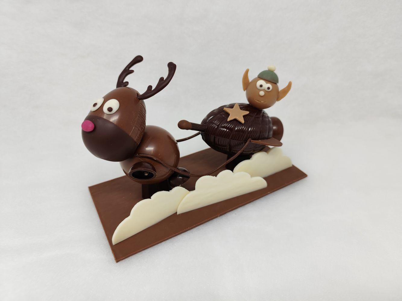 Montage en chocolat noir, lait, blanc et blanc noisette