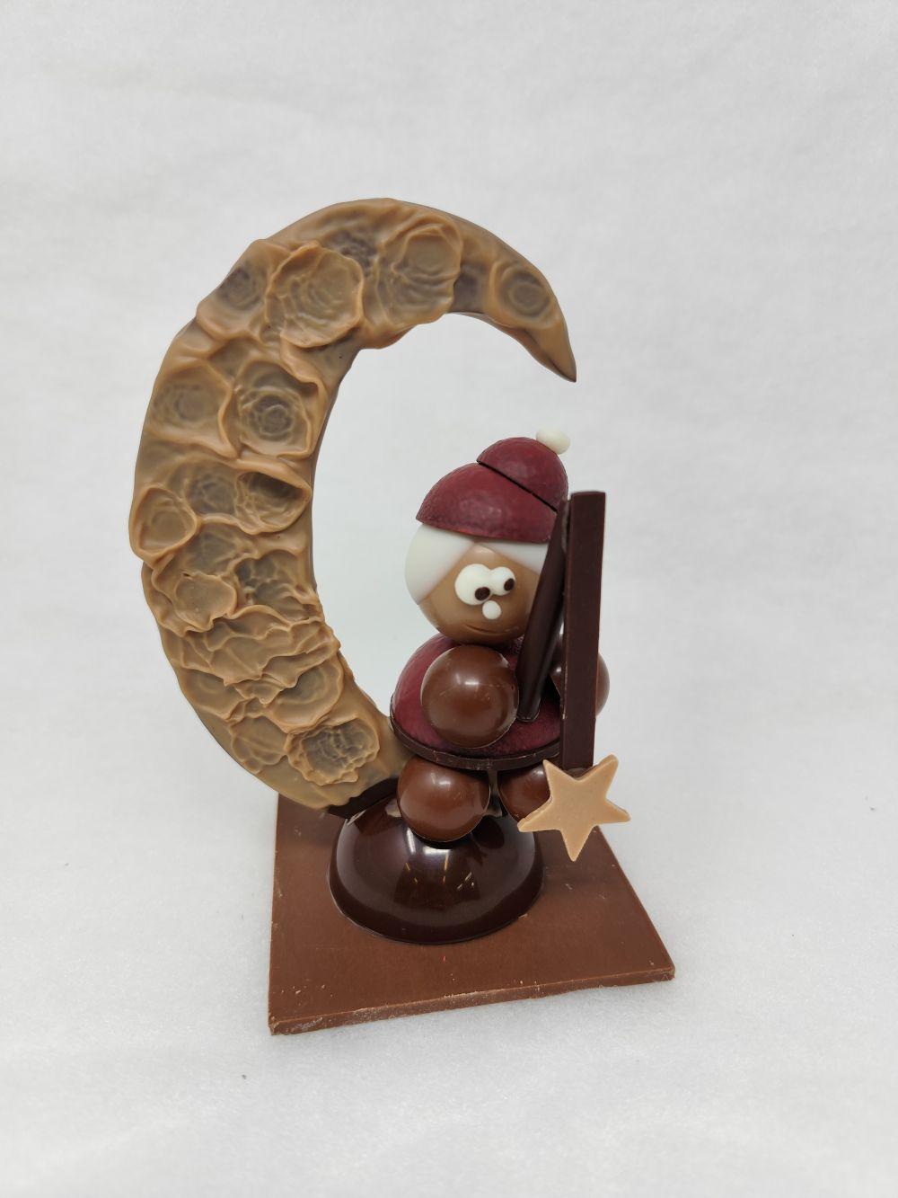 Montage en chocolat noir, lait, blanc et blanc noisette
